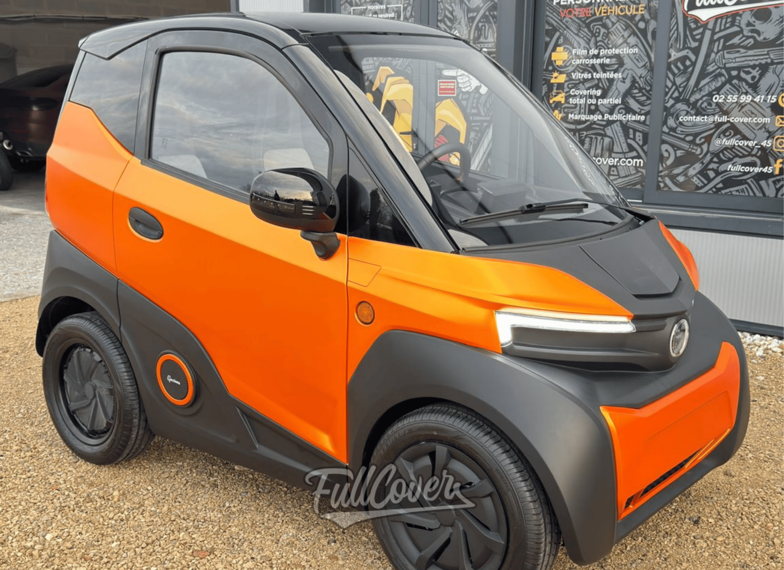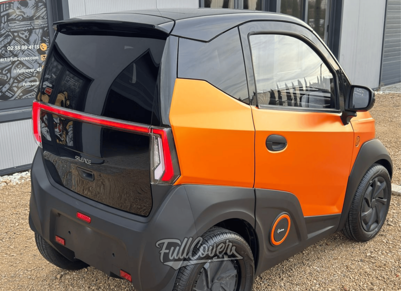 Chaque étape de la pose a été réalisée avec précision : préparation minutieuse des surfaces, tension parfaite du film et adaptation aux formes particulières de ce modèle compact et moderne. Le rendu final est homogène, mat et métallique, valorisant les lignes et les volumes de la Silence tout en apportant un style unique et haut de gamme.